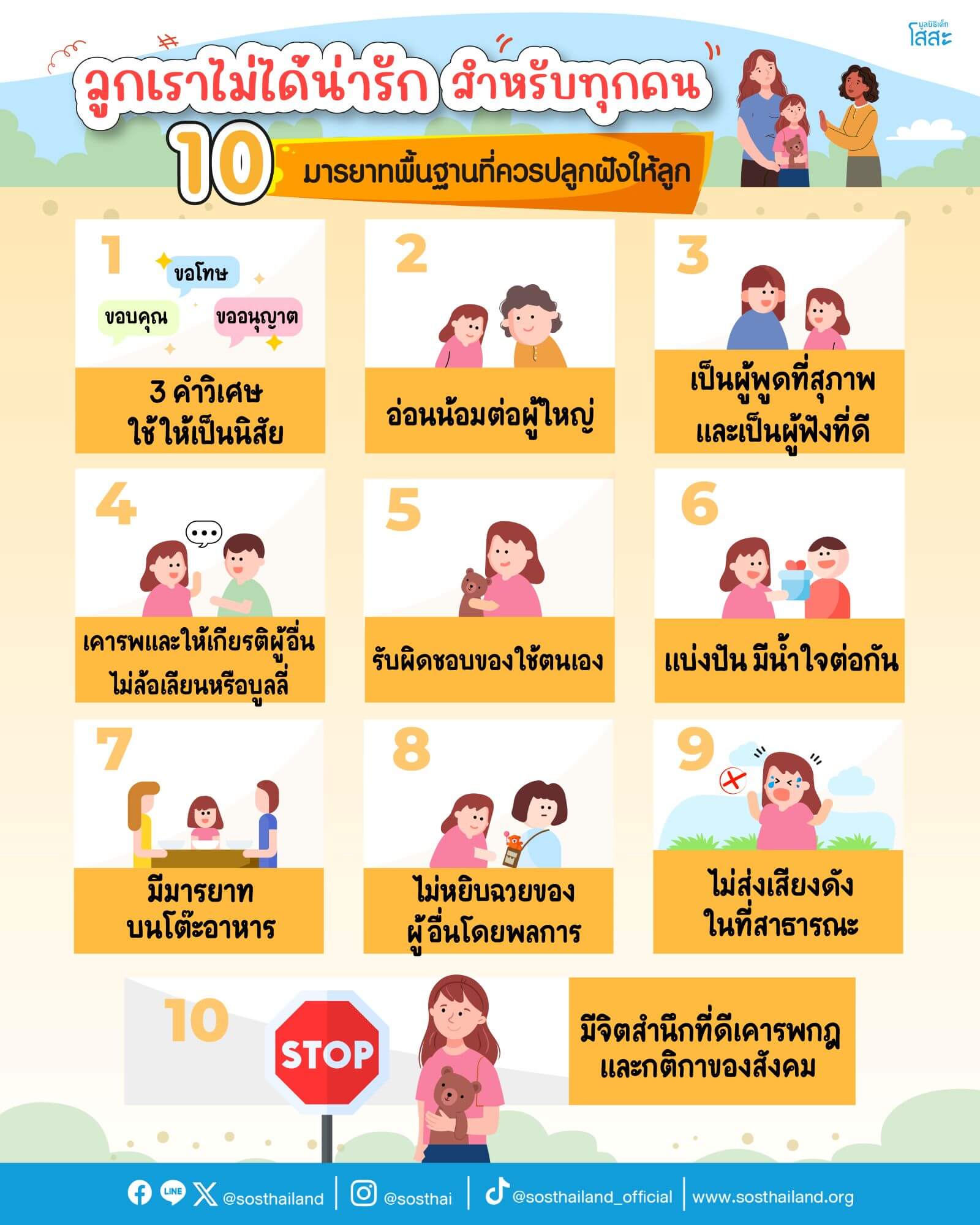 ![มูลนิธิเด็กโสสะ - ลูกเราไม่ได้น่ารัก สำหรับทุกคน - 10 มารยาทพื้นฐานที่ควรปลูกฝังให้ลูกรัก infograpgic]()