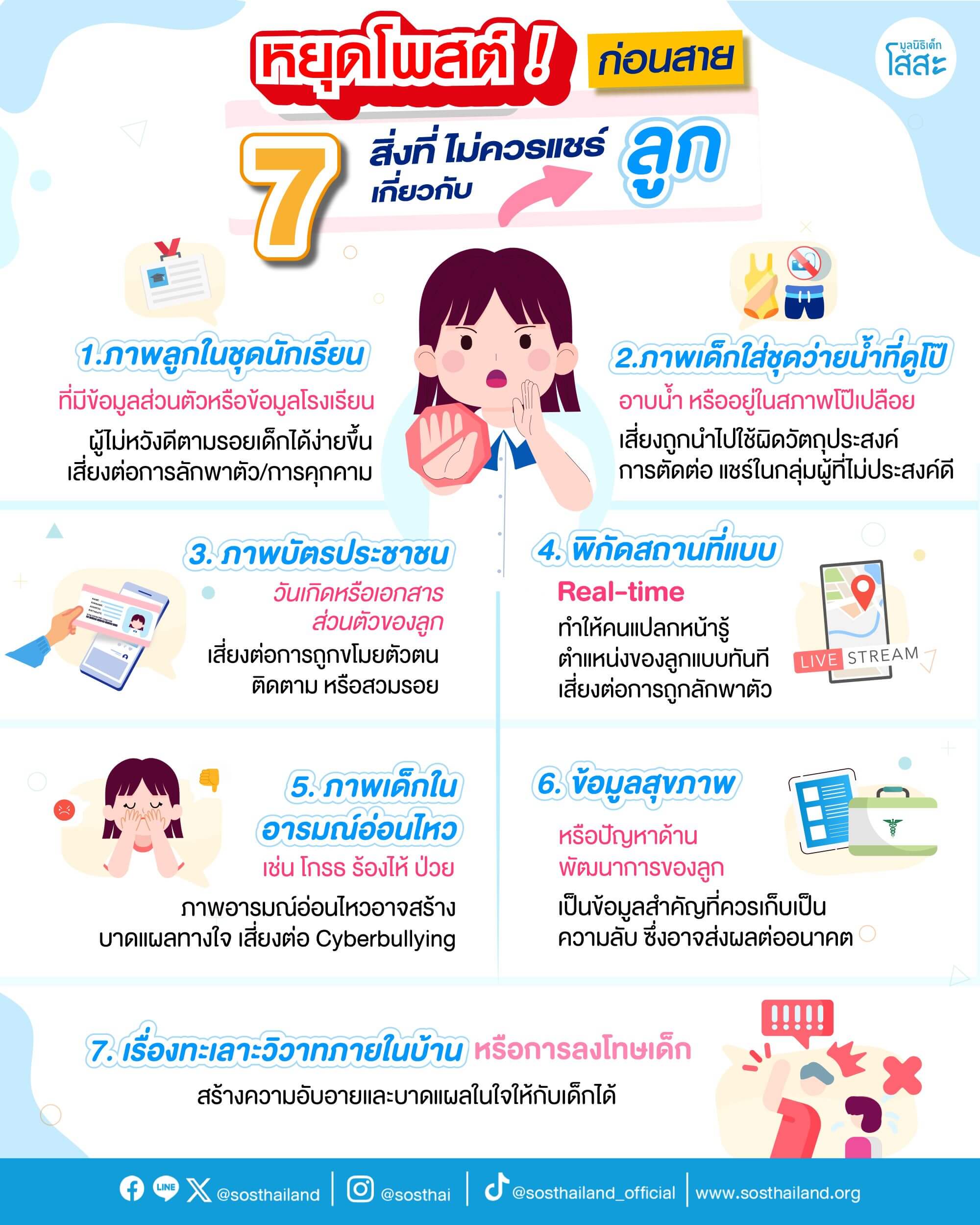 ![มูลนิธิเด็กโสสะ - สิ่งที่พ่อแม่ไม่ควรโพสต์เกี่ยวกับลูก เพื่อความปลอดภัยบนโลกออนไลน์ infographic]()