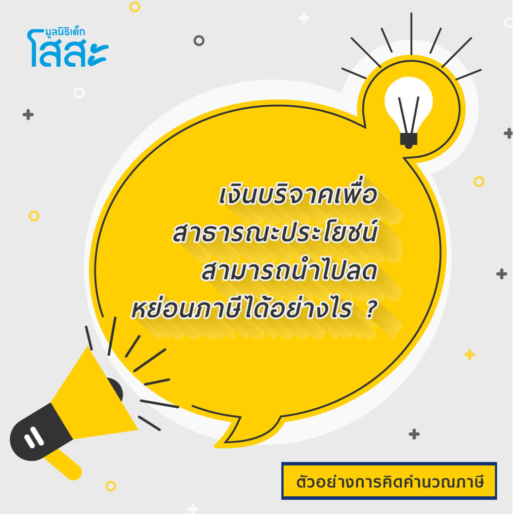 เงินบริจาคเพื่อสาธารณะประโยชน์ หรือ เงินบริจาคทั่วไป สามารถนำมาลดหย่อนภาษีได้ตามจำนวนเงินที่บริจาคจริง แต่ไม่เกิน