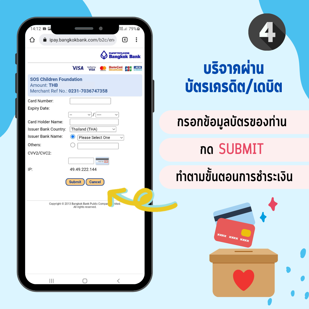 กรอกข้อมูลบัตรของท่าน จากนั้นกด SUBMIT ทำการกรอกข้อมูลตามขั้นตอนการชำระเงิน