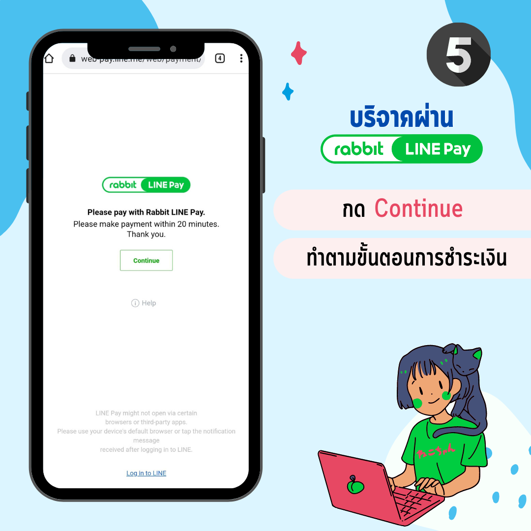 กด Continue จากนั้นระบบจะนำท่านไปสู่หน้าการชำระเงินของ LINE Pay ทำการกรอกข้อมูลตามขั้นตอนการชำระเงิน