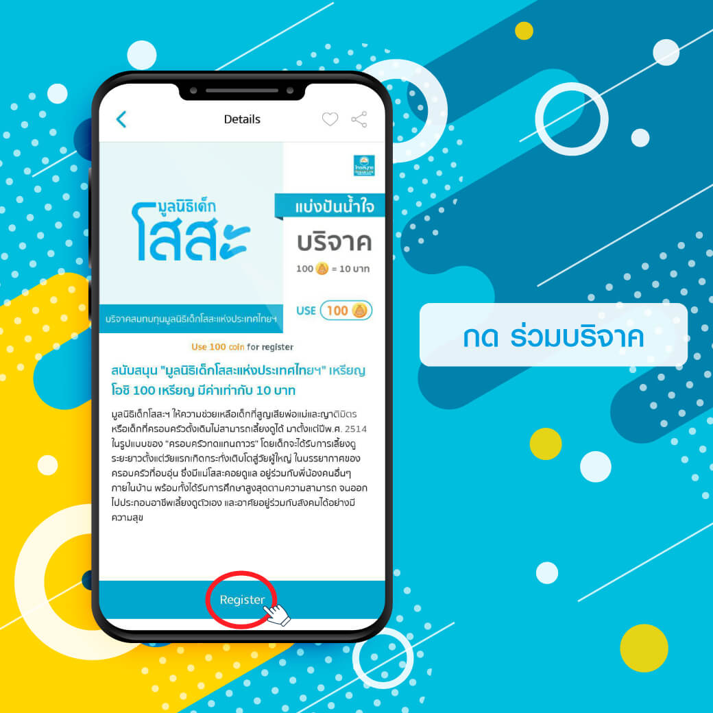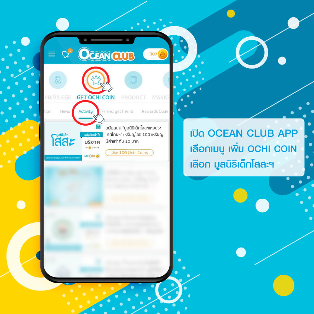 ร่วมช่วยเหลือเพื่อมอบครอบครัวทดแทนที่อบอุ่นให้กับเด็กๆ ที่สูญเสียครอบครัว ได้เติบโตอย่างมีอนาคตอีกครั้ง กับโครงการ OCEAN CLUB โดยบริษัท ไทยสมุทรประกันชีวิต จำกัด (มหาชน) เพียงเปลี่ยนเหรียญ OCHI COIN เป็นเงินบริจาค ผ่านทาง OCEAN CLUB Application