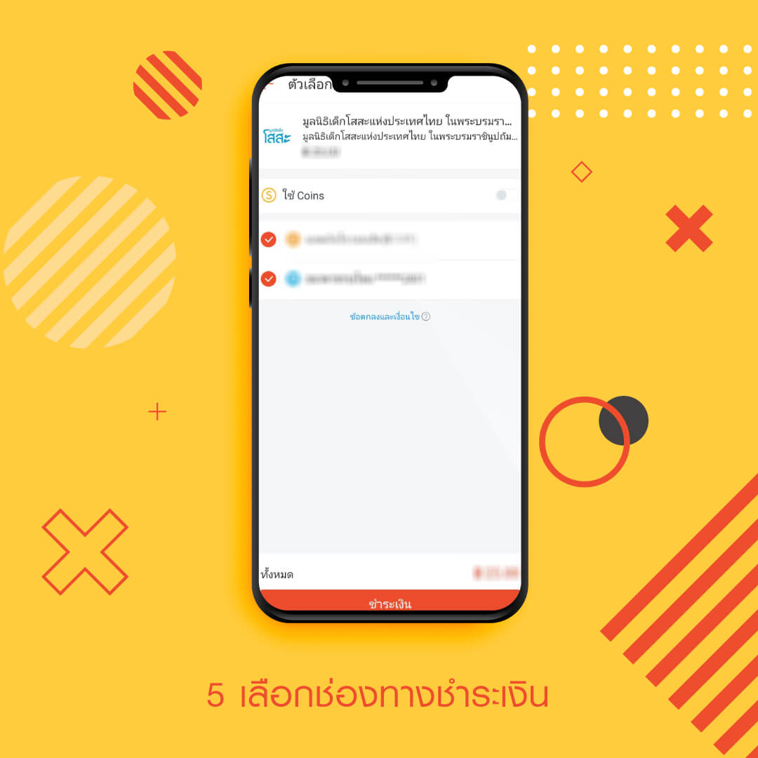 สามารถชำระผ่านช่องทาง ShopeePay Wallet และธนาคารต่างๆ รวมถึงสามารถใช้ คอยน์(Coins) ในการบริจาคได้เช่นกัน