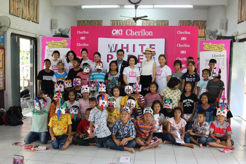 นิตยสาร OK! ร่วมกับ Cherilon จัดกิจกรรม “White Paper Charity ถุงน่องคุณใช้กระดาษเราขอ” โดยการสอนน้องๆ ประดิษฐ์ของใช้และของเล่นด้วยกระดาษรองถุงน่อง