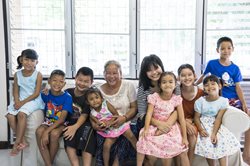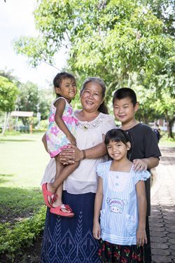 น้องอ้อมใจกับคุณแม่สุภาพร (แม่โสสะ) พร้อมด้วยพี่สาวและพี่ชาย