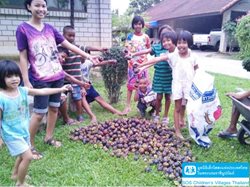 Children in SOS Children's Village Hatyai Songkla help together and enjoy to harvested the seasonal fresh fruit, mangosteen, rambutan and stink bean (sa-taw in Thai).