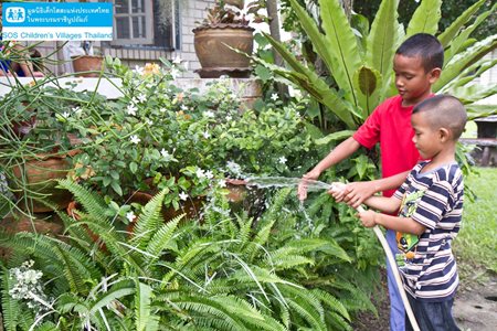 น้องๆ เยาวชนชายหมู่บ้านเด็กโสสะภูเก็ต ช่วยกันยกร่องแปลงผักและพรวนดิน เพื่อเตรียมปลูกผักสวนครัว เอาไว้ทำอาหารทานกับคุณแม่และพี่น้องในครอบครัวโสสะ ซึ่งน้องๆ ยังบอกอีกด้วยว่า "ถ้าช่วยกันก็แป๊บเดียวครับ"