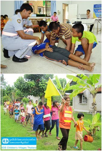 คุณแม่โสสะและเด็กๆ เข้ารับการอบรมซ้อมแผนป้องกันอุทกภัยและอัคคีภัย เพื่อเตรียมความพร้อมในการรับมือกับเหตุการณ์จมน้ำหรือสถานการณ์ไฟไหม้ ซึ่งพี่ๆ เจ้าหน้าที่สอนให้น้องๆ ได้ฝึกการผูกเงื่อนแบบต่างๆ ฝึกการปฐมพยาบาลผู้จมน้ำเบื้องต้น และซ้อมแผนอพยพแต่ละบ้านในหมู่บ้านเด็กโสสะหากเกิดเหตุไฟไหม้ เพื่อให้ทุกคนได้เตรียมพร้อมในการช่วยเหลือทั้งตนเองและคนรอบข้าง ที่สำคัญคือต้องมีสติในการรับมือกับสถานการณ์ที่เกิดขึ้น